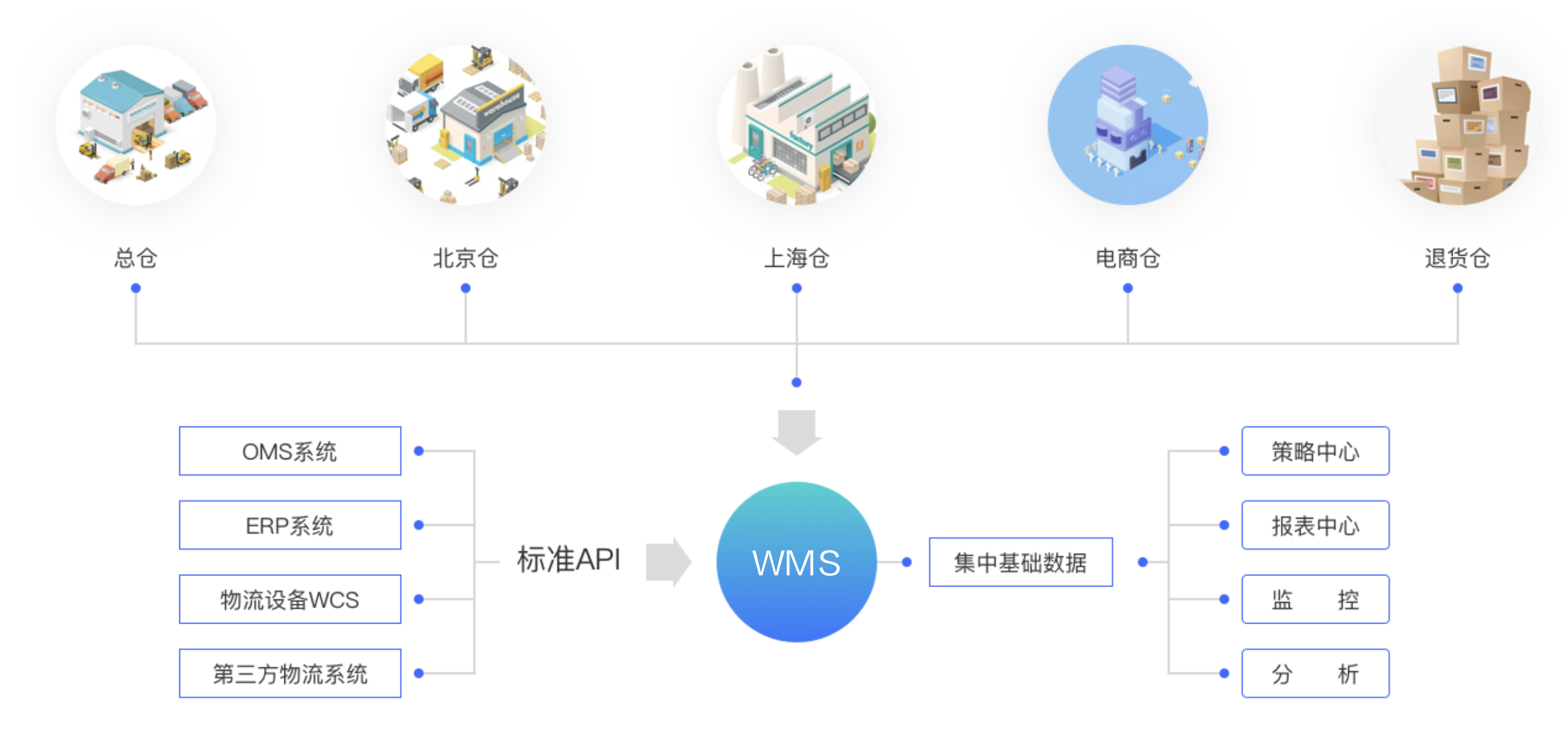 系统集中式部署,全面支持多仓库和多货主管理要求,多货主费用结算